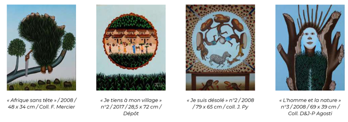 Quatre autres artistes centrafricains, pour la plupart représentatifs de la jeune génération locale, sont également présentés dans l’exposition : Joël Nambozouina, sculpteur, et les plasticiens Ernest Wéangaï, Bienvenu Kouka et Léonce Nzabba.
