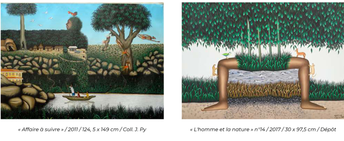 L’Hostellerie centre d’art singulier présente durant plusieurs mois à Dijon une exposition consacrée à l’artiste Dieudonné Sana Wambeti, né à Begoua en 1977, actuellement le peintre le plus renommé de la République Centrafricaine, qui prend clairement parti pour la défense écologique de la planète.